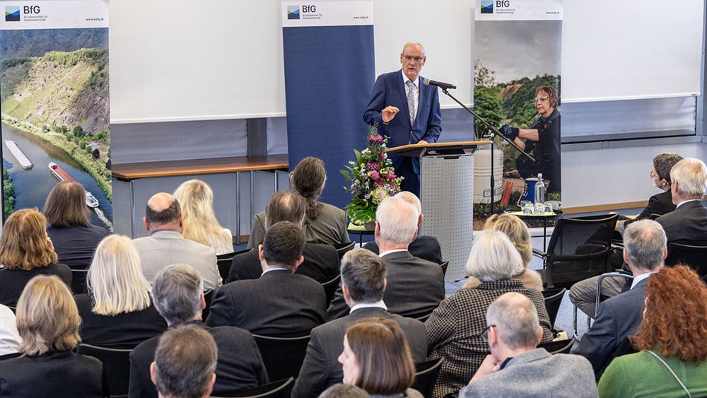 Auch Anke Leue, Leiterin der Generaldirektion Wasserstraßen und Schifffahrt (GDWS), überbrachte ein Grußwort, mit dem sie die enge Verbundenheit der beiden Behörden und die beratende Rolle der BfG innerhalb der Wasserstraßen- und Schifffahrtsverwaltung des Bundes unterstrich. Der Vorsitzende des Hauptpersonalrates beim BMV, Günther Ruf, unterstrich die jahrzehntelange gute und stets vertrauensvolle Zusammenarbeit mit den Interessenvertretungen der Beschäftigten, die sich auch im neuen Amt fortsetzen werde.