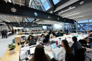Die zusätzlichen Flächen dienen zur qualitativen Verbesserung der Lehre im Fachbereich bauen-kunst-werkstoffe. Hier setzt die Fachrichtung Architektur nun ein innovatives Lehrkonzept um, bei dem Lehrende und Studierende enger zusammenarbeiten. „Lehrende und Studierende sind inzwischen in einen großen, flexiblen Arbeitsbereich umgezogen, der multifunktional genutzt werden kann. Dadurch wird der Kontakt insbesondere bei Projektarbeiten deutlich intensiviert“, betont Prof. Dipl.-Ing. Ulof Rückert, Architekturprofessor an der Hochschule Koblenz und Prodekan des Fachbereichs. Die Studierenden können auf diese Weise besser und individueller betreut werden. Ermöglicht wurde das offene Raumkonzept auch durch die Bereitschaft der Professorinnen und Professoren, auf Einzelbüros zu verzichten und ihren Arbeitsplatz in einem kommunikativen Großraumbüro zu beziehen. Weitere Arbeitsplätze für Lehrpersonal wurden auf einem Emporen-Geschoss eingerichtet, das über Treppen erreichbar ist.