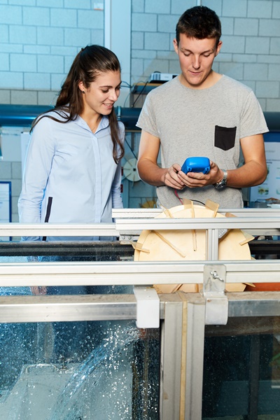 Foto 02: Im Wasserlabor der Hochschule Koblenz erforschen Studierende die Eigenschaften des Wassers. Auch in der Kinderuni geht es um dieses Thema. (Bild aus der Vor-Corona-Zeit. Foto: Hochschule Koblenz/Gloger)