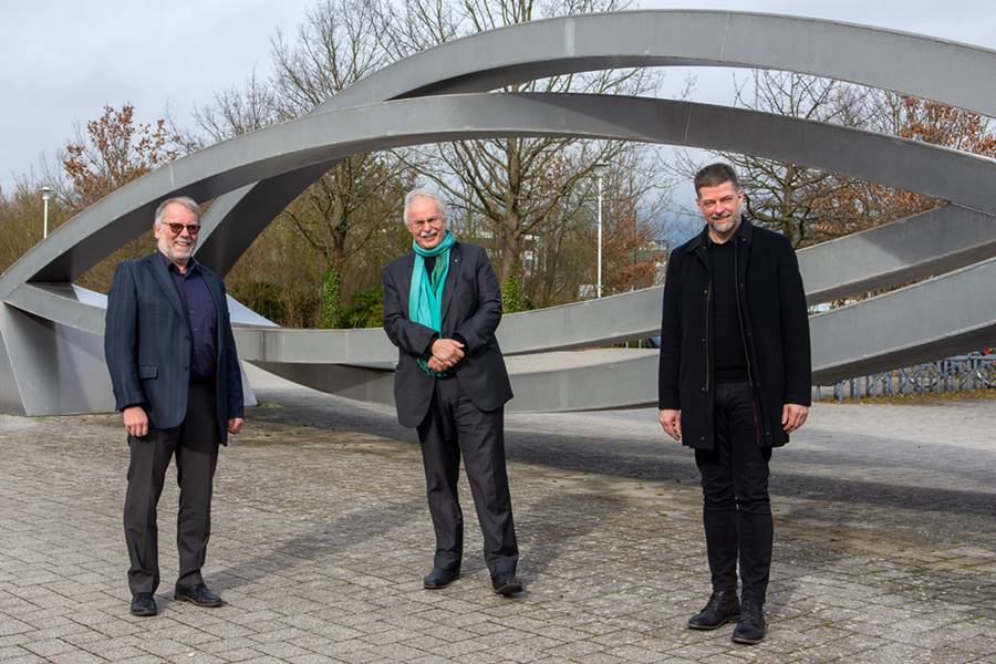 Foto: (v.l.): Prof. Dr. Lothar Kirschbauer, Prof. Dr. Kristian Bosselmann-Cyran, Prof. Peter Thomé. Auf dem Bild fehlt WfdW-Geschäftsführerin Prof. Ulrike Kirchner. (Foto: Hochschule Koblenz)