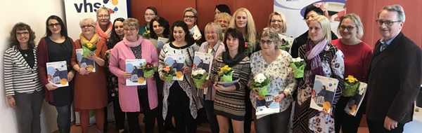 Positives Miteinander: Die Besonderheit der Qualifizierung bestand auch darin, dass im tätigkeitsbegleitenden Teil der Qualifizierung bereits tätige Tagesmütter als auch „Neueinsteiger“ gemeinsam die eigenen Kompetenzen weiterentwickelt haben und sich mit Themen wie dem Aufbau der Kindertagespflege, Förderung von Kindern, Zusammenarbeit mit Eltern beschäftigt haben. Dieses Miteinander wurde von allen Teilnehmerinnen sehr positiv erlebt, insbesondere den Austausch untereinander habe man als sehr hilfreich und bereichernd erlebt, so eine langjährige Tagesmutter. Dank galt vor allen Dingen Kursleiterin Brigitte Müller sowie den Referentinnen Sandra Schmidt, Silvia Mees, Valeska Weber und Anika Talhoff, die die Kursteilnehmerinnen fachlich fundiert und motivierend durch die Kursreihe begleitet haben.