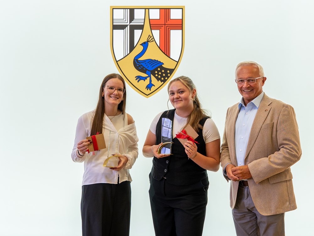 „Mit Ihnen kann sich unser Landkreis über sympathische und erfolgreiche Werbeträger freuen“, betonte Landrat Achim Hallerbach bei der Ehrung. „Ihr zeigt, dass Leidenschaft, Disziplin und familiäre Unterstützung Großes möglich machen. Ich wünsche euch, dass ihr euren Weg mit Freude weitergeht und vielleicht sogar eine professionelle Karriere einschlagt.“ Als Zeichen der Anerkennung überreichte Landrat Achim Hallerbach dem Duo eine Stele mit Widmung für besondere sportliche Leistungen.