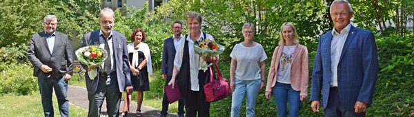 Der stellvertretende Sozialamtsleiter Michael Hirsch verbrachte einen großen Teil seines Berufslebens in der Sozialabteilung und galt für viele Kolleginnen und Kollegen als wandelndes Sozialrechtslexikon. Landrat Achim Hallerbach und der 1.Kreisbeigeordnete Michael Mahlert wünschten den angehenden Ruheständlern gemeinsam mit der Abteilungsleiterin Agnes Ulrich und dem Stellvertreter Stefan Henzel, alles Gute und vor allen Dingen Gesundheit für den neuen Lebensabschnitt.