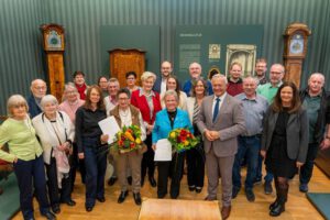 Musikalisch umrahmt wurde der Festakt von Sängerin Ruth Zimmermann, Johannes Weiß am Flügel und Wilfried Bellinghausen am Vibraphone. Museumsdirektorin Jennifer Stein und ihr Museumsteam sowie Heike Blum-Vogt aus dem Kreishaus war es wiederum zu verdanken, was auch in organisatorischer Hinsicht alles „ausgezeichnet“ vonstattenging.