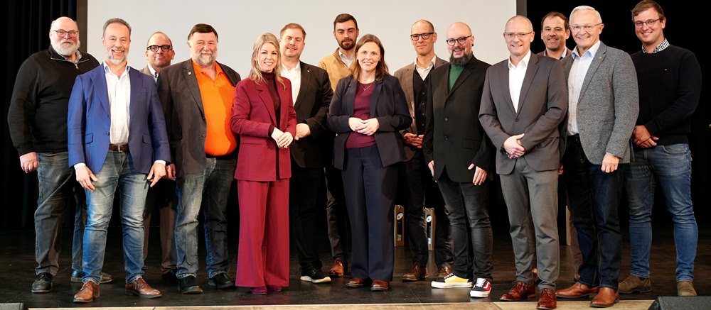Foto: Bekannten sich auf der Lichtmesstagung zur regionalen Landwirtschaft. (v.l.): Ulrich Schreiber (Kreis-Vorsitzender Bauernverband Neuwied), Dr. Jan Bollinger (AFD), Dominik Ehrenstein (1. Vorsitzende VLF Neuwied), Udo Franz (FWG), Lana Horstmann (SPD), Stefan Thoma (FDP), Rolf Allner (Referent und Geschäftsführer Fa. Gobio), Ute Ernst (Grüne), Markus Mille (Moderator und Kreis-Geschäftsführer Bauernverband), Markus Seemann (Grüne),  Jürgen Schmied (CDU), Johannes Maur (Landwirtschaftskammer RLP), Landrat Achim Hallerbach, Jan Schumacher (Geschäftsführer VLF Neuwied) Foto: Martin Boden / Kreisverwaltung Neuwied