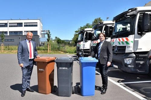 Foto: Die Neuwieder Abfallwirtschaft wird mit Beginn des kommenden Jahres eine neue Rechtsform erhalten und als “Anstalt öffentlichen Rechts“ (AöR) in ein kommunales Unternehmen überführt. Dabei wird die AöR die bisherigen Kreismitarbeiter der Abteilung Abfallwirtschaft und das operative Personal der RSAG zusammenführen. Das Foto zeigt Landrat Achim Hallerbach (links) mit dem Leiter der Neuwieder Abfallwirtschaft, Jörg Schwarz.
