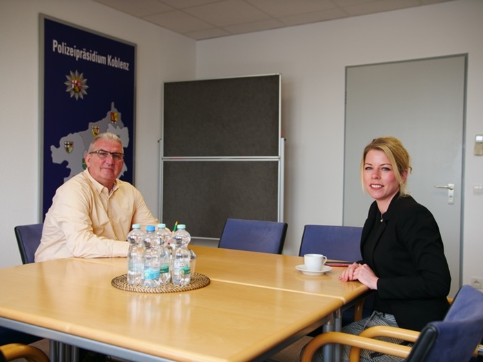 Am Dienstag, 02. Mai 2023, begrüßte Polizeipräsident Maron MdL Lana Horstmann im Polizeipräsidium Koblenz. Erstmals war man sich wenige Tage zuvor, am 14. April 2023, bei der feierlichen Eröffnung des Haus des Jugendrechts in Neuwied begegnet. Das war auch der Anlass den Kontakt zu intensivieren.