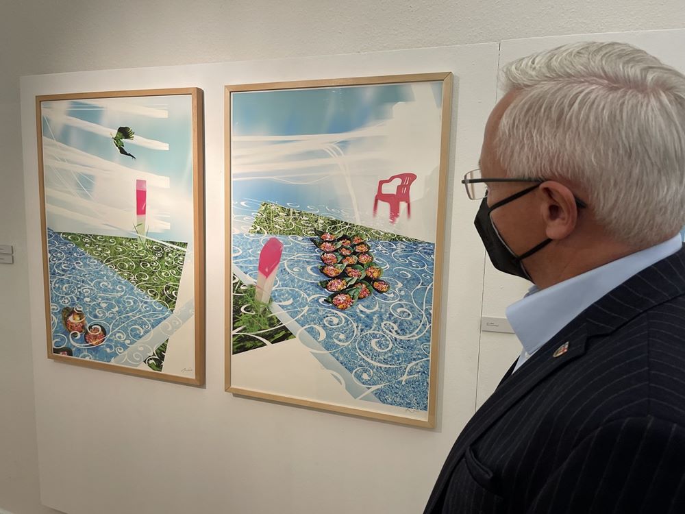 „Kunst und Kultur sind kein Luxusgut. Sie sind Grundwerte unserer Gesellschaft – vielleicht in Krisenzeiten mehr denn je“, stellte der Landrat dabei klar. Kunst sei eine eigenständige Form des Diskurses innerhalb der Gesellschaft und könne diese „als Ganzes erfreuen und bereichern“. Sie böten zudem Orte, in denen auch demokratisches Selbstverständnis gelebt und bestärkt werden, machte er deutlich.