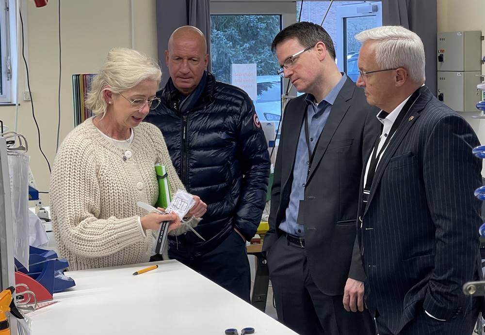 Foto: Qualität steht an erster Stellen, kein Teil geht ungeprüft heraus: Das demonstriert hier Produktionsleiterin Beate Armbrust Landrat Achim Hallerbach.