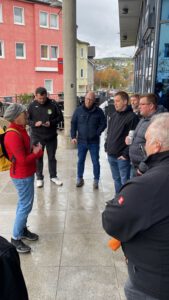 Vor Ort wurde die Reisegruppe von Stadtführerin Christiane Weber empfangen. In einer rund zweistündigen Führung vermittelte sie spannende Einblicke in die industrielle Vergangenheit der Region, insbesondere in die Historie des ehemaligen Walzwerks. Mit fundiertem Fachwissen beantwortete sie zahlreiche Fragen der Teilnehmer.
