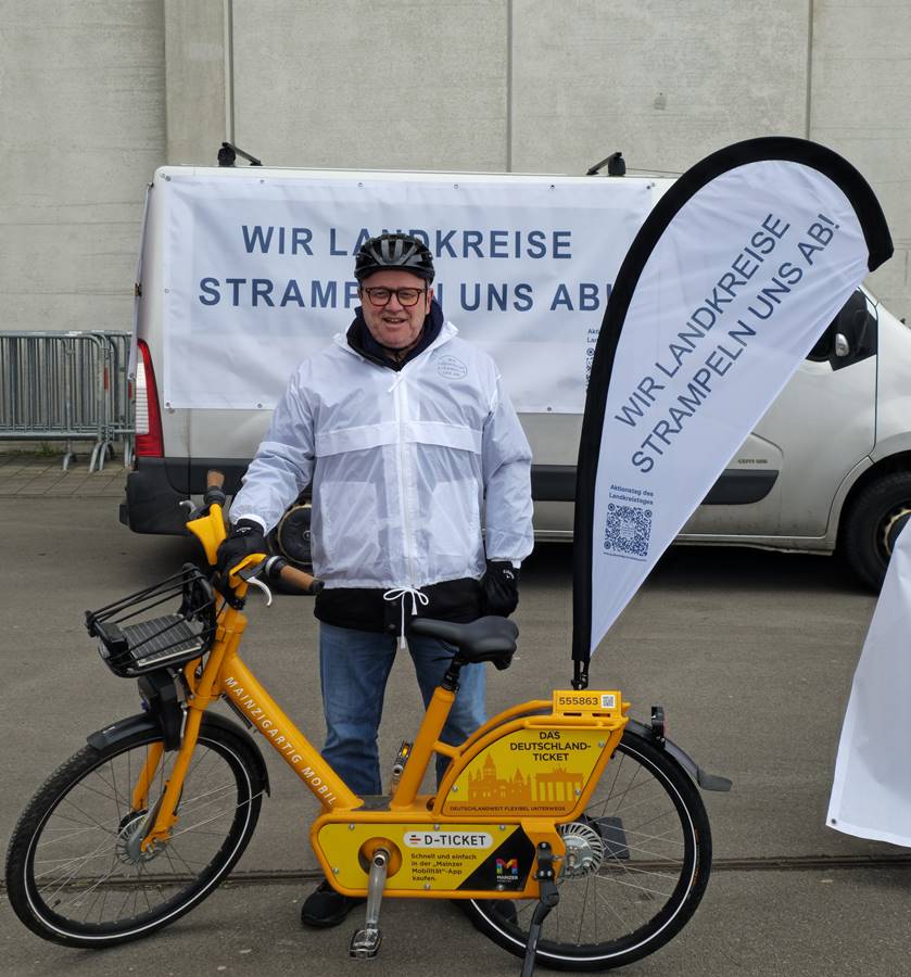 MAINZ – „Wir Landkreise strampeln uns ab!“ – Ein Notruf aller Landrätinnen und Landräte – Landrat Achim Hallerbach bei Fahrradaktion in Mainz: „Die aktuelle Situation ist alarmierend“