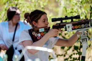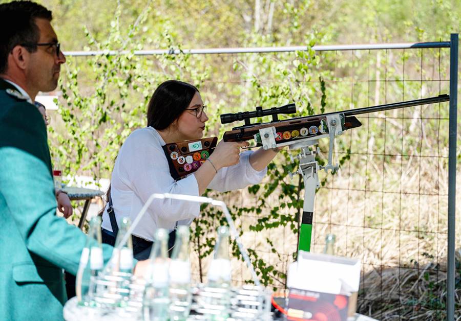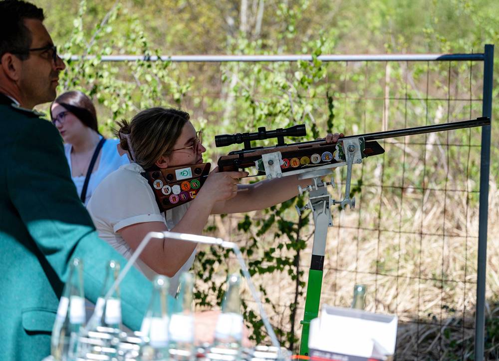 Vor dem Königsschießen hatte in der Mittagszeit allerdings 66 Personen auf die Ehrenpreise des stolzen, hölzernen Königsvogels geschossen und gehofft eine der Ehrennadeln sich ans Rever stecken zu können. Von den insgesamt 851 Schuß benötigten die Wettstreiter 397 Schuß um die Preise abzuschießen. Die Krone sicherte sich mit dem 57. Schuß Laura Kneip. Beim 73 Treffer war es Torben Schnabel der den Reichsapfel erzielte. Stefan Streginski holte sich das Zepter (81), Marvin Kneip den Kopf (165), Ina Lichtenthäler die linke Schwinge (197), Laura Kneip die rechte Schwinge (239) und Laura Seifen den Stoß (397). (wwa) Fotos: Diana Wachow (15) – Streginski (1)