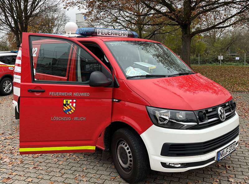 Foto: Feuerwehrfahrzeuge – wie hier aus Neuwied-Irlich – fahren am 8. Dezember mit mobilen Warnmeldern durch ausgewählt Bezirke im Kreis Neuwied und testen die Alarmierung der Bevölkerung.