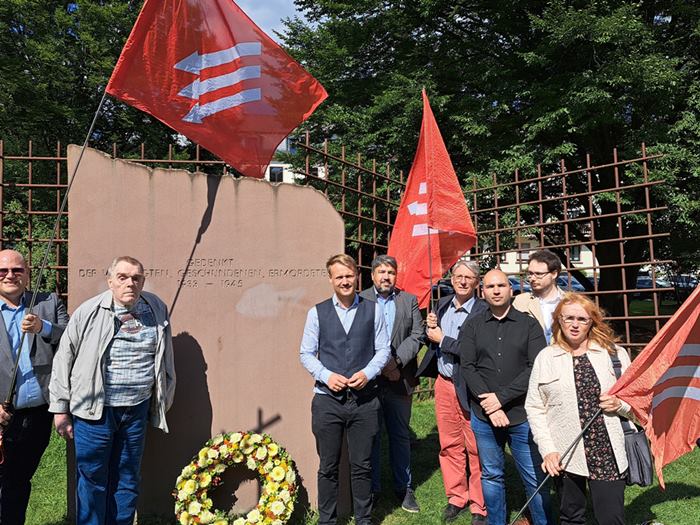 60.000 Mitglieder des Demokratieschutz-Bündnisses „Reichsbanner Schwarz-Rot-Gold“, auch aus der Neuwieder Ortsgruppe, waren im August 1931 anlässlich des Verfassungstages auf dem Koblenzer Clemensplatz zur gemeinsamen Kundgebung für die Demokratie und gegen Extremismus zusammengekommen. Das nahm nun eine Abordnung des 1933 von den Nationalsozialisten verbotenen Bündnisses um den Landesvorsitzenden Lennard Oehl gemeinsam mit dem bekannten Neuwieder Leserbrief-Autoren und Menschenrechts-Aktiven Manfred Kirsch zum Anlass, um der eigenen damaligen Opfer und aller weiteren NS-Opfer am Mahnmal auf dem Reichenspergerplatz zu gedenken, das sich direkt am Ort der gewaltigen Kundgebung von 1931 befindet. „Besonders auch der Blick auf die damalige Entwicklung zeigt, wohin das Wählen extremistischer Parteien führt“, mahnen die heute friedlich mit politischer Bildung und Erinnerungskultur für Demokratie werbenden Republik-Verteidigerinnen und -Verteidiger.