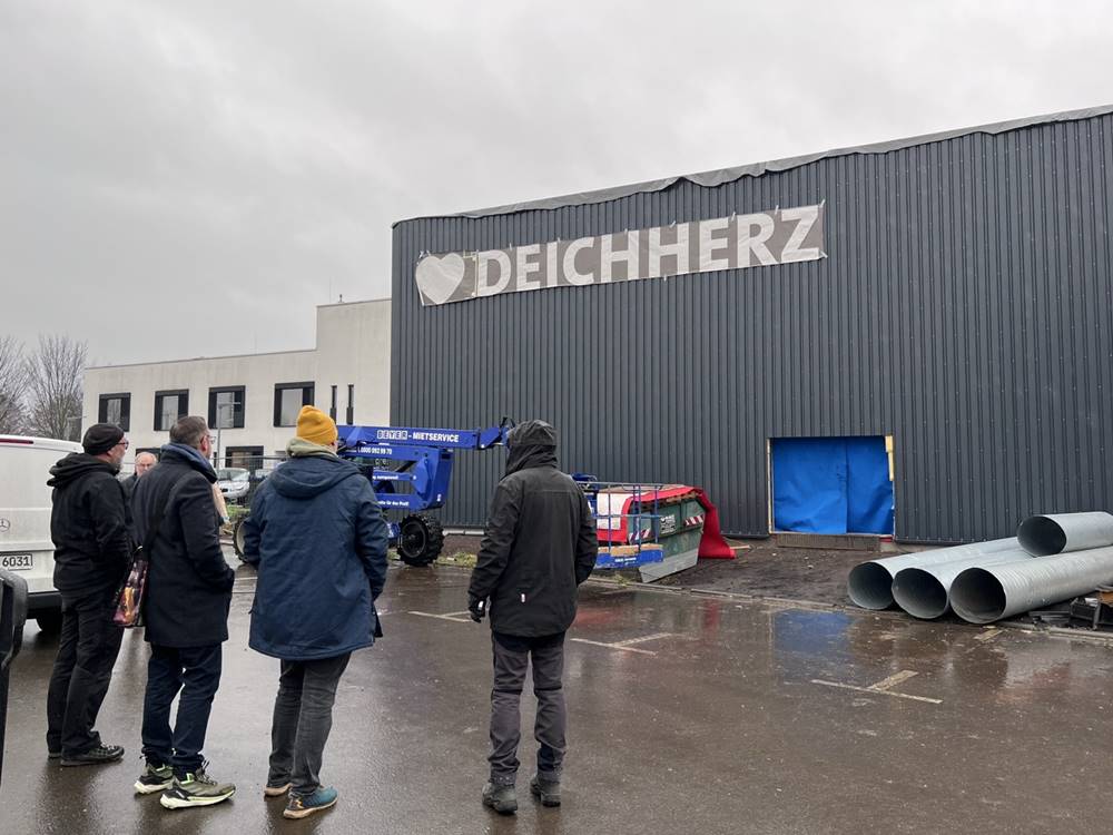 Bisher hatte sich Bauleiter Thomas Endres bei Fragen zur Fertigstellung bedeckt gehalten. Nun geben die SWN bekannt: Zu Ostern werden sie die „DEICHHERZ“-Halle voraussichtlich an die Stadt übergeben können.