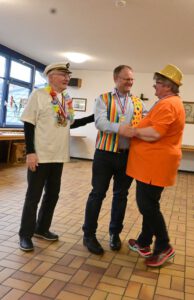 Im bunt geschmückten Pfarrsaal der Sankt Matthias Gemeinde in Neuwied roch es nach frisch gebrühtem Kaffee und selbstgebackenen Krapfen als die ersten kostümierten Gäste mit lautem Alaaf rufen zur traditionellen Karnevalssitzung eintrafen. Pünktlich um 14.11 Uhr begrüßte Werner Hammes die Narrenschar und kündigte die erste Tanzgruppe an. Moderatorin Daniela Köhler aus dem Festausschuss Neuwieder Karneval begrüßte nicht nur die fleißigen Handwerker und die Solomariechen mit dem Gardetanz. Sie brillierte auch mit einer eigenen Büttenrede in der sie Neuwied und sogar den Oberbürgermeister auf die Schippe nahm. Als rheinische Frohnatur verstand der bunt kostümierte Stadtchef die Kritik und klatsche wie die ganze Festgesellschaft ordentlich Beifall. Der Höhepunkt des Nachmittags war ganz klar der Besuch des Kinderprinzenpaars aus Oberbieber mit großem Gefolge. Sie hatten nicht nur ihre Garde, sondern auch die Rotznasen mitgebracht. Die Minitänzer im Kindergartenalter erfreuten das Publikum. Es wurden Orden für die Trainerinnen und Gummibärchen für die Kinder verteilt. Den Abschluss machte Diakon Michael Hummer als Till Eulenspiegel, bevor um 17.00 Uhr für die frohgelaunten Gäste mit dem Schlusswort von Daniela Köhler eine schöne Veranstaltung zu Ende ging. (mabe) Fotos: Marlies Becker