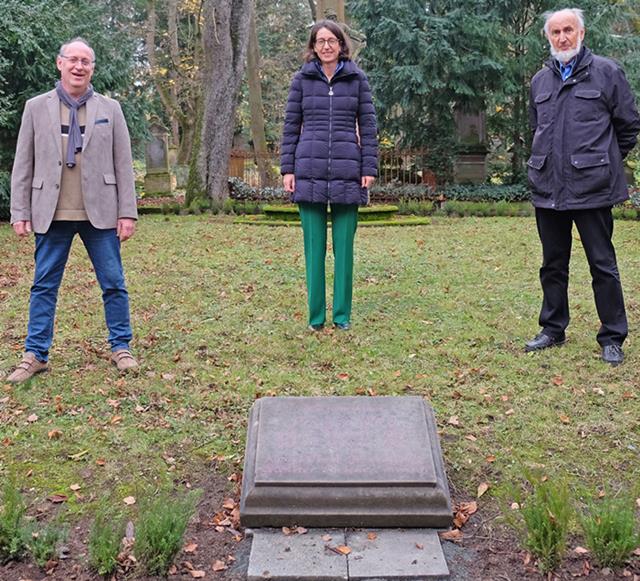 Der Buchsbaumzünsler hat auch an der Einfassung der Fürstengruft auf dem städtischen Alten Friedhof ganze Arbeit geleistet und die ursprünglich dort stehenden Sträucher vernichtet. Auf Anregung von Hans Joachim Feix (rechts), der mehrere Bücher über die Historie des Alten Friedhofs veröffentlicht hat, haben die Servicebetriebe Neuwied die marode Bepflanzung entfernt und neue Sträucher rund um das kreisrunde Areal gesetzt, das die Gruft bedeckt und von der Ehrengarde gepflegt wird. Zusätzlich sorgte Feix auch dafür, dass der auf der Einfassung platzierte Gedenkstein für Prinz Maximilian, den bekannten Neuwieder Naturforscher, gereinigt und mit neuer Schrift versehen wurde. Isabelle Fürstin zu Wied dankte Feix für dessen Engagement. Wie Feix berichtet, kommen immer wieder Besucher – teils gar aus Übersee -, die sich nach dem Grab für Prinz Max erkundigen, der sich aufgrund seiner damaligen Forschungsreisen in den USA bis heute hoher Anerkennung erfreut.