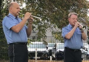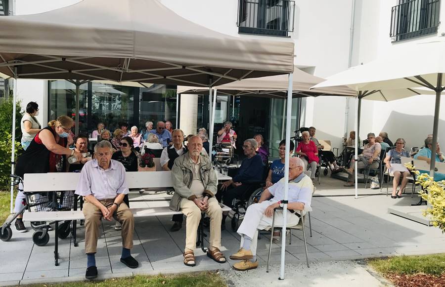 Gekonnt führten die beiden durch ihr Programm aus Schlagern, Volksliedern und anderen bekannten Melodien auf der Trompete. Mit großem Applaus haben die Bewohnerinnen und Bewohner die beiden Polizisten verabschiedet, die natürlich noch eine kleine Zugabe spielten.