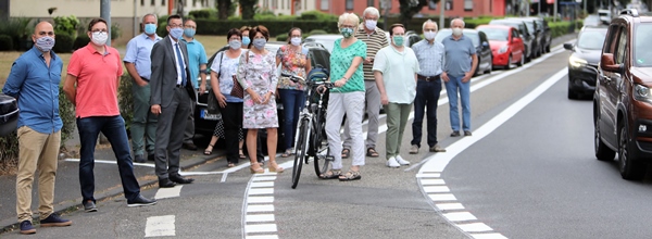 NEUWIED – Radweg in der Langendorfer Straße bringt mehr Sicherheit – Radwegeinfrastruktur gehört zu wichtigem Thema der Papaya-Koalition – Die Vertreter der Papaya-Koalition aus CDU, Bündnis 90/ Die Grünen und FWG im Stadtrat Neuwied haben sich ein Bild von den neuen Fahrbahnmarkierungen in der Langendorfer Straße gemacht. Nach langer Zeit konnte die Realisierung erfolgen und bringt nach Ansicht der Koalitionäre endlich eine klare Linie für den Radverkehr an dieser Stelle. Auto- und Fahrradverkehr wird durch die Markierung mehr Klarheit gegeben und führt somit zu mehr Sicherheit.