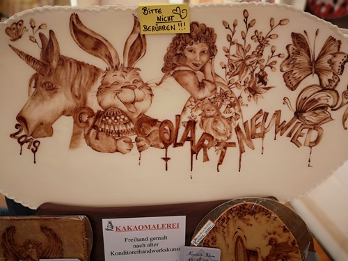 Wie der Name des Festivals schon andeutet, wird das meist süße Objekt der Begierde nicht nur als verführerisches Lebensmittel angeboten, sondern auch als Rohmasse für kreative künstlerische Darbietungen und Experimente. So können Gäste vor Ort wieder Konditorenmeisterin Dorte Schetter von Dorte’s Torten & Marzipan Atelier bewundern, die ihre eindrucksvollen Kakaomalereien vorführt.