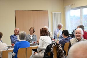 Alle Jahre wieder meist in den letzten beiden Monaten des Jahres laden die Bürgermeisterin Anneliese Rosenstein und ihr Gemeinderat die Senioren von Oberlahr zum geselligen Treffen bei Kaffee und Kuchen, Unterhaltung nettem Beisammensein und Gesprächen von gestern und heute ein. War es früher mal leerer bei solchen Einladungen, bleibt heute kaum ein Platz unbesetzt, sind doch heute schon die Vertreter der Babyboomer der Nachkriegsgeneration dabei. Eine verteilte Lektüre über die Oberlahrer Volksschule gab viel Gesprächsstoff. Ob an Lehrer Schmidt oder das „Frollein Esch „wurden die Anekdoten ausgetauscht. Auch die Bauarbeiter an der Schule waren vielen als Familienmitglieder bekannt. Eine Freude war auch das Wiedersehen mit älteren Mitbewohnern, die am Dorfgeschehen schon lange aus gesundheitlichen Gründen nicht mehr teilgenommen hatten. Nachdem die Gäste begrüßt und das reichhaltige Kuchenbuffet abgeräumt war, konnten sich die Senioren bei einem spannenden mit alten Bildern untermalten Vortrag einer Expertin über die Bergbautraditionen in Oberlahr informieren. Die Region lebte in den letzten Jahrhunderten von den zahlreichen Erzabbaugebieten im Wiedtal. Unterhaltsame Geschichten und wahre Begebenheiten wurden wieder lebendig. Der Nachmittag klang aus mit schmissiger Musik und einem deftigen Abendessen, bevor im Pfarrheim wieder Ruhe einkehrte. Bedauert wurde von vielen der Tod des ehemaligen, langjährigen Pastors. Clemens Feldhoff starb im Sommer kurz vor seinem 90-jährigen Geburtstag. Zwei Jahrzehnte hatte er am Leben im Dorf immer teilgenommen. Aus gesundheitlichen Gründen hatte er mit 85 seinen Job als Pfarrer IR. aufgegeben und war in eine Seniorenanlage bei Köln übersiedelt. Auf dem dortigen Friedhof hat er dann seine letzte Ruhe gefunden. Hat sein Wirken in Oberlahr vor allem bei der älteren Bevölkerung viele Erinnerungen und Spuren hinterlassen, an die man sich gern erinnert. (Mabe) Fotos: Marlies Becker