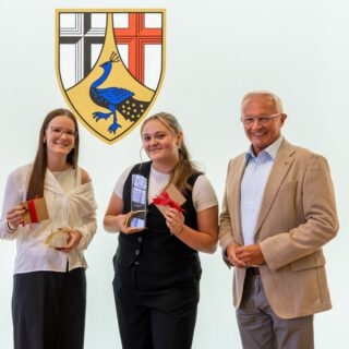 KREIS NEUWIED – Aus dem Landkreis Neuwied an die Weltspitze – Landrat Achim Hallerbach empfing mit Miah Bein und Maggie Dückmann das HipHop-Weltmeisterinnen-Duo M&M