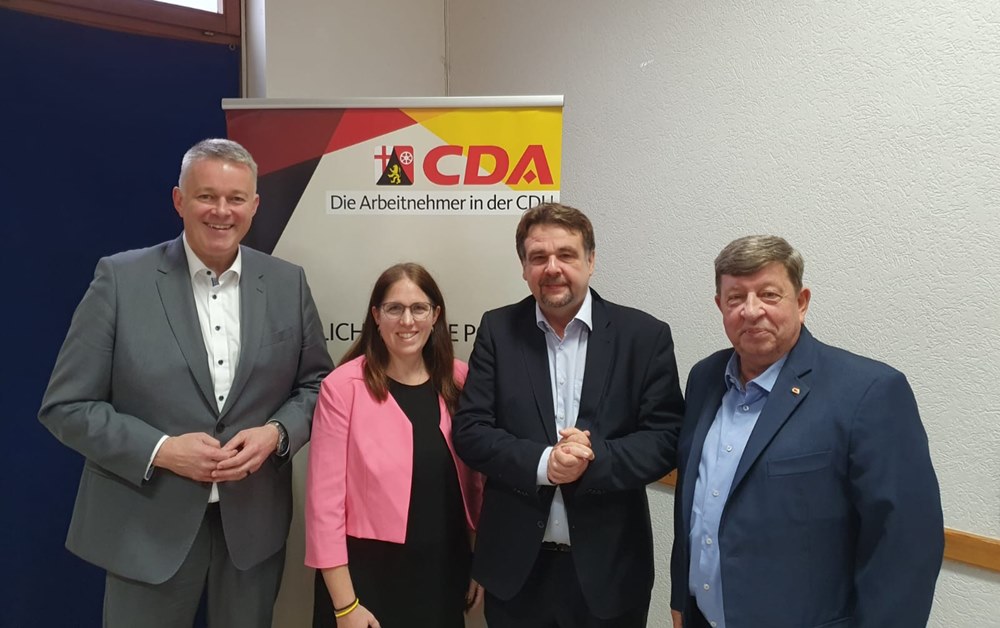 Foto: v.l.: Gordon Schnieder MdL CDU-Landesvorsitzender und Spitzenkandidat, Jessica Weller CDA-Landesvorsitzende, Dennis Radtke MdEP CDA-Bundesvorsitzender, Norbert Faltin Bezirksvorsitzender CDA Koblenz-Montabaur)