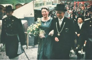 - Josef Sauer bei der Parade während des Ballonzugs in der Schönsteiner Ortsmitte ist auf Bild 3 zu sehen. Er wurde dann im Jahre 1963 selbst Schützenkönig. Von 1977 bis 1987 war Sauer Schützenmeister im Schlossdorf.