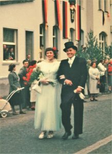 - beim Festumzug vor dem Hotel Zum Frankenthal. Cornel Ortheil führt hier seine Elfriede, die eine Schwester von Heinz Stahl ist und ebenfalls von Hof Auen stammt.