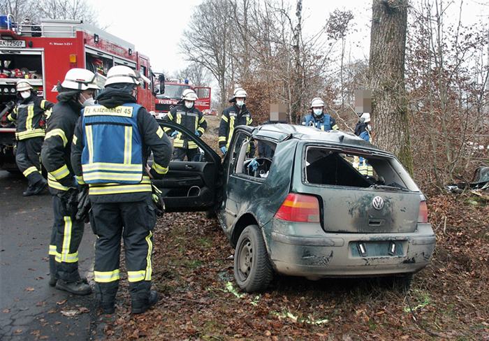Donnerstagmittag, 23. Dezember 2021, gegen 12:30 Uhr ereigbnete sich auf der L 279 zwischen Katzwinkel und Friesenhagen ein schwerer Verkehrsunfall. In einer Linkskurve im Bereich einer Kuppe verlor ein 18jähriger Fahranfänger auf der nassen Fahrbahn die Kontrolle über seinen PKW, kam ins Schleudern und prallte in Fahrtrichtung linksseitig mit der Beifahrerseite gegen einen Baum.