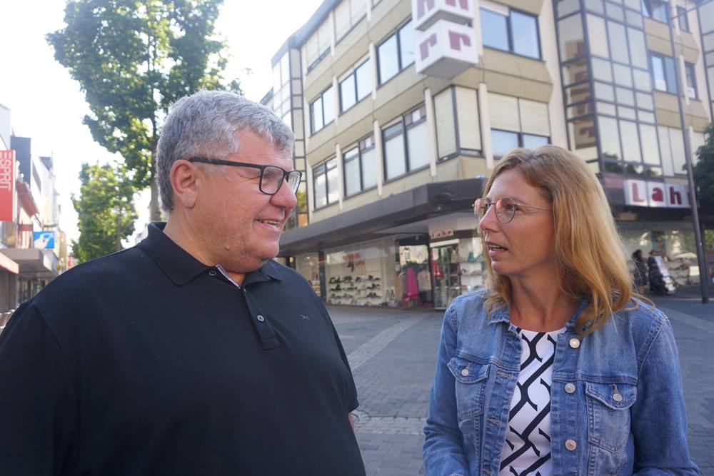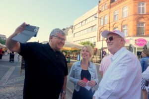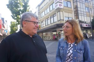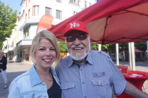 Schon früh am Morgen waren Lana Horstmann und Sabine Bätzing-Lichtentäler auf dem Luisenplatz unterwegs und suchten das Gespräch mit den Menschen auf dem Wochenmarkt. Sie stellten KIPKI vor. KIPKI ist ein mit 250 Millionen Euro das größte Klimaschutzprogramm für Kommunen in der Geschichte von Rheinland-Pfalz. Die Landtagsabgeordneten aus den Kreisen Neuwied und Altenkirchen warben für funktionierenden Klimaschutz vor Ort und eine breitere Akzeptanz der Energiewende und forderten die Marktbesucher auf auch im privaten Bereich Maßnahmen zu unterstützen. Hier sei ein doppelter Gewinn für den Klimaschutz zu erreichen. Unter dem Motto Marktpositionen fand ein reger Austausch über die Parlamentarische Arbeit der beiden Abgeordneten in Mainz statt. Auch SPD-Urgesteine wie Fredi Winter und Robert Raab gesellten sich unter die Aktiven am roten Zelt am Fahnenhügel. (mabe) Fotos: Marlies Becker