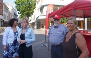 NEUWIED – Sozialdemokratische Frontfrauen laden zum Gespräch auf dem Neuwieder Wochenmarkt ein.