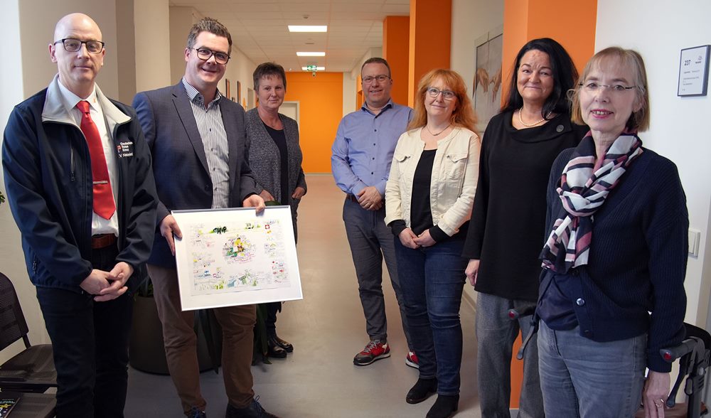 Foto: Die Verantwortlichen der ersten Sozialkonferenz (v. links): Marco Bust (DRK Kreisverband), Bürgermeister Peter Jung, Regina Berger (Leiterin Amt für Soziales, Integration und Senioren), Bernhard Fuchs (Jugendamtsleiter), Ulrike Proft (Caritasverband Rhein-Wied-Sieg), Anja Jung (AWO-Kreisverband Neuwied) und Renate Schäning (Diakonisches Werk). Der Ideengeber der Neuwieder Sozialkonferenz, Thomas Voß (Sprecher des Paritätischen Wohlfahrtsverbands), konnte nicht anwesend sein.