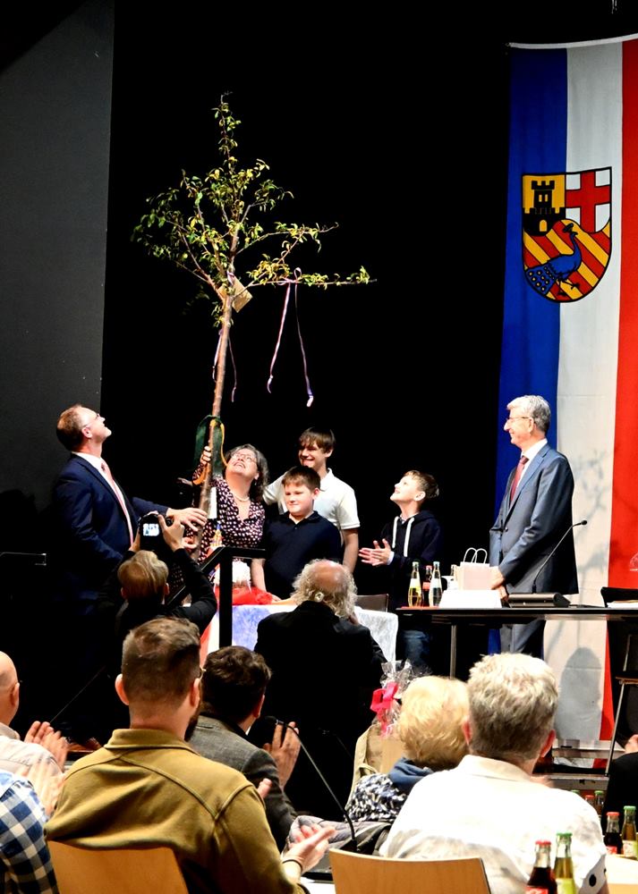 Mit einem Baumgeschenk für den eigenen Garten an Familie Einig und einen Eintrag ins goldene Buch der Stadt endete der offizielle Teil. Im festlich geschmückten Foyer wurde dann bei Sekt und Selters und mit kulinarischen Köstlichkeiten noch dem Anlass entsprechend gefeiert. (mabe) Fotos: Marlies Becker