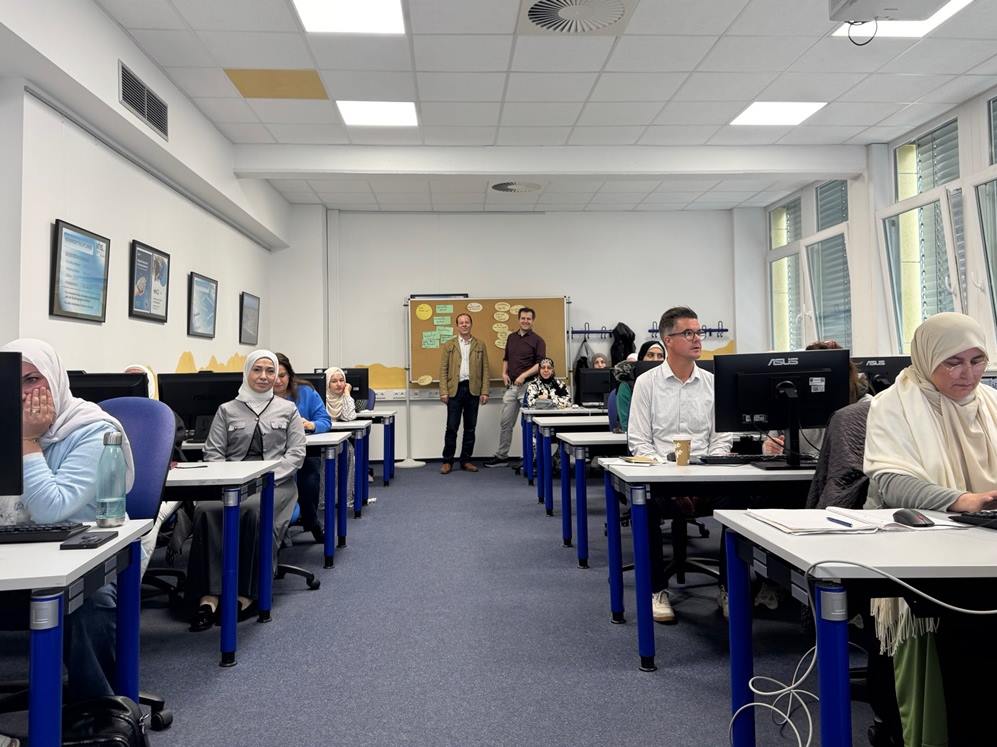 Die Nachfrage war dabei so groß, dass der Kurs schnell restlos ausgebucht war. Hagen Peters, vhs-Programmbereichsleiter für Digitalisierung, und ein weiterer Dozent der Volkshochschule gaben den Teilnehmerinnen an fünf Terminen grundlegende Einblicke in die Funktionsweise von Computern und gängigen Anwendungen. Auf dem Lehrplan stand unter anderem der Umgang mit Internet-Browsern, Suchmaschinen und E-Mail-Diensten, die Grundlagen von IT-Sicherheit sowie eine Einführung in die Text- und Tabellenverarbeitung. „Die Teilnehmerinnen waren wissbegierig, untereinander hilfsbereit und zeigten sich motiviert, die im Kurs erlernten Kenntnisse in Zukunft praktisch anzuwenden“, zieht Kursleiter Peters ein zufriedenes Fazit. Auch für Bürgermeister Peter Jung war das Kooperationsprojekt von vhs und EIRENE ein voller Erfolg: „Mit der Vermittlung von grundlegenden Computerkenntnissen erlangen die Frauen nicht nur praktische Skills für den Alltag, sondern werden gleichzeitig auch zu mehr Eigenständigkeit und gesellschaftlicher Teilhabe befähigt.“