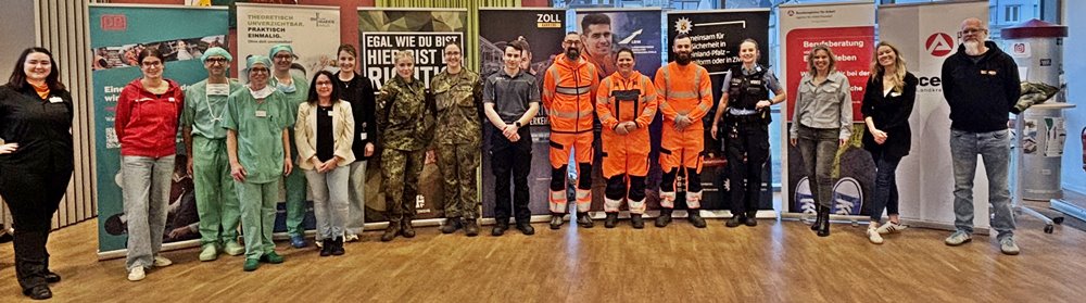 Neben „klassischen“ Arbeitgebern, die man direkt mit Uniformen in Verbindung bringt, wie Polizei, Zoll, Bundeswehr und Deutscher Bahn, waren auch das Neuwieder Food Hotel, die Marienhaus-Gruppe und der Landesbetrieb Mobilität (LBM) vertreten. Zahlreiche interessierte junge Menschen nutzten die Gelegenheit, um sich im Jugendzentrum mit den Vertretern der jeweiligen Berufsgruppen auszutauschen und Einblicke in die verschiedenen Tätigkeiten und Aufgabenbereiche zu erhalten. Sie erhielten spannende Informationen aus erster Hand und lernten den Arbeitsalltag, die Voraussetzungen sowie die vielfältigen Berufseinstiegsmöglichkeiten kennen. Über das rege Interesse freute sich das Orga-Team um Jennifer Müller von der Agentur für Arbeit, Helena Kähm aus dem Neuwieder Jobcenter und Big House-Sozialpädagoge Nils Kaminski.