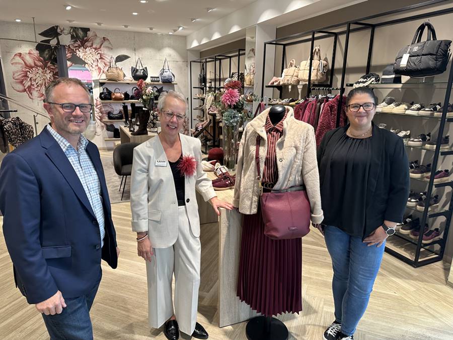 Mit den Gewerbetreibenden vor Ort im Gespräch sein – das ist Oberbürgermeister Jan Einig und Citymanagerin Michaela Ullrich ein wichtiges Anliegen. Und so stand kürzlich wieder ein Besuch bei einem Innenstadthändler auf dem Programm – dieses Mal im Schuhhaus Lahr am Luisenplatz. Gemeinsam tauschten sie sich mit Filialleiterin Claudia Klebula über aktuelle Entwicklungen und Herausforderungen für den Einzelhandel in der Innenstadt aus. „Der direkte Draht zu unseren Händlern ist für uns unverzichtbar – denn eine lebendige Innenstadt lebt vom Dialog“, macht Michaela Ullrich deutlich.
