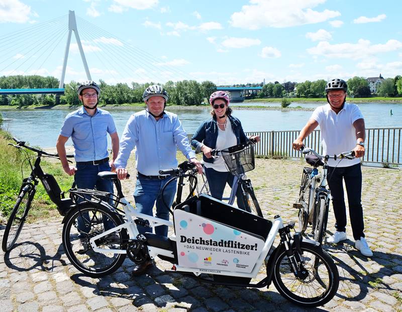 Foto: Landrat Achim Hallerbach (rechts), Neuwieds Oberbürgermeister Jan Einig (2. von links) und die beiden Orga-Teammitglieder Kay Bröhl (Stadtbauamt, links) und Gabi Schäfer (Stabsstelle Energie, Klima und Umwelt bei der Kreisverwaltung) hoffen auf viele Teilnehmer aus Stadt und Kreis bei der Aktion Stadtradeln.