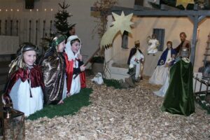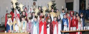 Die Schönsteiner Sternsinger haben sich wieder einmal selbst übertroffen. Das Sammelergebnis im Zuge der jüngsten Aktion des Kindermissionswerks beläuft sich auf gut 3.000 Euro, gab Pater Thomas beim Rückkehrgottesdienst in der Pfarrkirche St. Katharina bekannt. Starker Beifall der Gottesdienstbesucher galt den 28 Mädchen und Jungen im Alter zwischen sechs und zwölf Jahren, die sich zuvor auf den Weg zu allen Häusern in Schönstein gemacht hatten. Über den Segenswunsch „20*C+M+B+23“ freute man sich dann allerorten und geizte auch nicht mit Präsenten für die prächtig als Könige ausstaffierten Kinder. Fürbitten und Dankgebete kamen während der Hl. Messe von Maria, Nikolas, Maximilian, Paul, Robin, Julian, Pia, Niclas, Lennard und Jana. Nach einem herzlichen Dankeschön auch an die Spender und Betreuerinnen bestand die Gelegenheit zum Betrachten der schönen Krippenanlage im Altarraum des Gotteshauses. Der wahrhaft stolze Betrag wurde umgehend dem Katholischen Pfarrbüro Wissen zugeleitet. Er dient verschiedenen Hilfsprojekten in Indonesien und fördert auch weltweit Kinderrechte. (bt) Fotos: Bernhard Theis