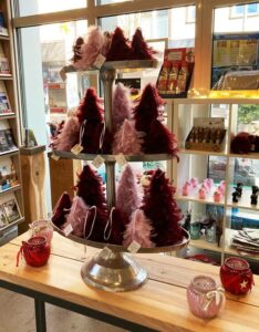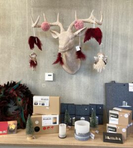 Während des Knuspermarkts konnten Interessierte in der beliebten Amalie-Hütte mit ihren regionalen und carititativen Zwecken dienenden Produkten schöne Weihnachtsgeschenke kaufen. Viele dieser Artikel sind nun in der städtischen Tourist Information auf dem Luisenplatz zu haben. „Wir wollten den Bürgerinnen und Bürgern weiterhin die Möglichkeit bieten, diese besonderen Produkte erwerben zu können“, sagt TI-Leiterin Vanessa Selent. Dabei handelt es unter anderem um Wein und Sekt aus der vom Hochwasser geplagten Ahr-Region und selbst Gefertigtes von Mitarbeitern der Informa gGmbH, darunter Strickwaren, Vogelhäuschen, Holzfiguren, Kissen, Feder-Tannenbäume, Karten, Kerzen, Windlichter und Papiersterne. Die TI ist montags bis freitags von 10 bis 17 Uhr und samstags von 10.30 bis 14 Uhr geöffnet.