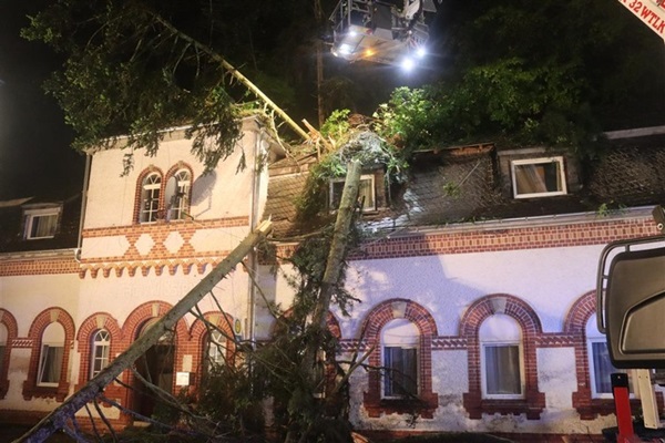 In der Nacht von Samstag auf Sonntag, 05. auf den 06. Juni 2021, stürzten im Traben-Trarbacher Ortsteil Kautenbach aus einem angrenzenden Wald insgesamt vier Bäume auf das Dach eines Wohnhauses. Alle Bewohner des Hauses befanden sich während des Vorfalls im Gebäude, konnten sich aber unverletzt aus dem Gebäude retten. Das Gebäude, an dem hoher Sachschaden entstand, ist vorübergehend unbewohnbar. Die Hauptstraße in Kautenbach war während des Einsatzes für mehrere Stunden gesperrt. Im Einsatz vor Ort waren Feuerwehr, Polizei und das THW. Quelle und Foto: Polizei