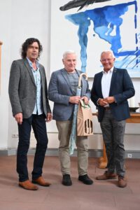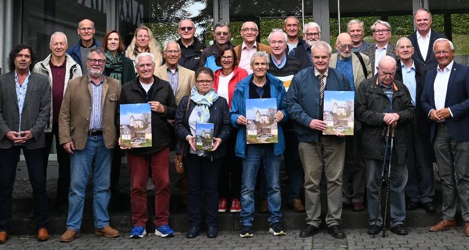 In der schmucken 1824 erbauten Evangelischen Kirche Urbach hatten sich die Mitwirkenden des diesjährigen Heimatbuch versammelt, um die frisch gedruckten Exemplare des 416 Seiten starken Einbands zu feiern. Landrat Hallerbach dankte den anwesenden Redakteuren für die geleistete Arbeit und freute sich nun die 101 Ausgabe des Jahrbuchs vorzustellen. Das tat denn auch Dr. Reinhard Lahr in seiner humorvoll und lockeren Art. Geschichtlich interessante, traurige und humorvolle Beiträge der 31 Autoren, von denen im letzten Jahr leider drei gestorbenen sind, wurden in seiner Rede beleuchtet. Besonderer Dank galt Arno Schmidt, der seit 1989 mehr als 40 Beiträge verfasst hat und inzwischen auch als Redaktionsmitglied arbeitet. Er wurde mit Wein und einem Kreis-Schirm als Präsent belohnt. Im Anschluss an die Feierstunde in der Kirche waren die Gäste ins Haus am Hochgericht, dessen Foto auch den Einband des neuen Heimatjahrbuch abbildete, eingeladen. Das „Haus am Hochgericht“ verbindet gekonnt alte und neue Architektur und die Evangelische Kirche besteht aus einem romanischen Turm aus dem 13. Jahrhundert und einem achteckigen Zentralbau, der an die Aachener Pfalzkapelle erinnert. Im gemütlichen Inneren konnten Landrat, Redakteure und Gäste sich nach dem gemeinsamen Foto bei Kaffee und Kuchen austauschen und neue Pläne fürs nächste Jahrbuch machen. Das aktuelle Exemplar ist ab dem 1. Oktober 2025 zu einem Preis von 8,00 Euro beim Buchhandel und den örtlich bekannten Verkaufsstellen der Gemeinden im Kreis erhältlich. (mabe) – Fotos: Marlies Becker