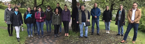 Foto: Prof. Dr. Willy Spannowsky, Ortsbürgermeister Norbert Klaes, 1. Beigeordneter Horst Reimann, Bauamtsleiter Tim Kraft sowie Elisa Heilig und Sonja Krombach vom Bauamt der VG Kirchen zeigten den Studenten/innen das Wildenburger Land (alle mit negativem Coronatest).