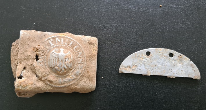Die Toten lagen nebeneinander, so dass nach Einschätzung der Kriminalpolizei Neuwied von einem regelrecht angelegten Feldgrab ausgegangen werden kann. Bei einem Soldaten wurde die Hälfte einer Erkennungsmarke gefunden. Die wurde umgehend der „Deutschen Dienststelle für die Benachrichtigung der nächsten Angehörigen von Gefallenen der ehemaligen deutschen Wehrmacht (WASt)“, die beim Bundesarchiv in Berlin angesiedelt ist, übersandt. Am Dienstag, 22. Februar 2022, erhielt die KriPo Neuwied vom Bundesarchiv die Nachricht, dass zu der Erkennungsmarke im Archiv keine mehr Person ermittelt werden konnte. Somit sind die vier Soldaten unidentifiziert. Ob der Fund im Zusammenhang mit der Sprengung der Kronprinz-Wilhelm-Brücke am 09. März 1945 zusammenhängt, oder die Vier beim Bombardement der Umgebung oder der Brücke selbst durch alliierte Bomber ums Leben kamen, bleibt offen. Quelle und Foto: Polizei