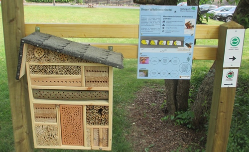 Foto: Wildbienenhotel und Infotafel an einer Kita in Krunkel-Epgert (mes) Foto: Naturpark-Rhein-Westerwald