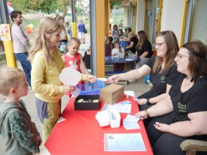 Neben selbstgemachten internationalen Spezialitäten, Waffeln und Kuchen sorgten vielfältige Spielstationen für Begeisterung bei den Kindern. Ein besonderes Highlight war die Lesung der Autorin Solveig Prusko, die ihr Buch „Die zauberhafte Wortverlosung“ vorstellte.