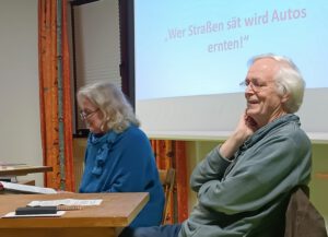 Mit diesem markanten Beispiel begannen Marein und Eckhard Osten-Sacken, Mitstreiter der ersten Stunde in der BI, ihren Vortrag über den Verkehrsforscher Hermann Knoflacher, dessen Forschungsergebnisse das Motto der BI: „Wer Straßen sät, wird Autos ernten“, untermauern.