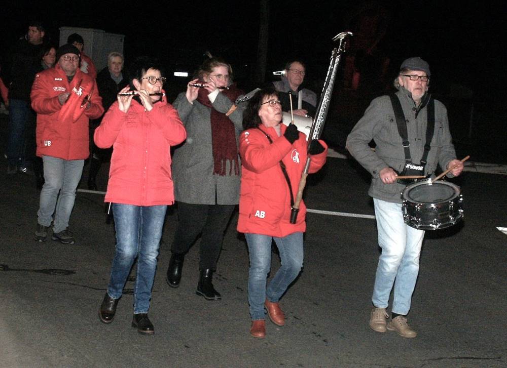 - Foto: Nach dem feierlichen Verbrennen des „Karnevalsmensch“ ging es mit leerer Schubkarre und in Begleitung der französischen Freunde zurück ins Vereinslokal der Wissener Karnevalsgesellschaft. Auf dem Weg dorthin besserte sich die Stimmung merklich und erreichte schließlich fast das Niveau der vergangenen Tage.