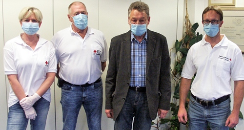 Foto: Beim jüngsten Blutspendetermin der Rotkreuz-Bereitschaft Wissen konnte auch wieder Ernst-Dieter Henn, 3. von li., begrüßt werden. Er blickt nun auf 100faches Spenden zurück. Weiter sind als Helfer zu sehen: Heike Dietz, Harald Witt und Carsten Henn. Christoph Müller als Vierter im Bunde ist nicht im Bild.