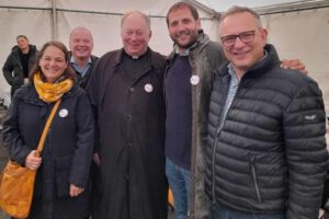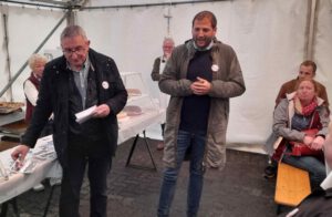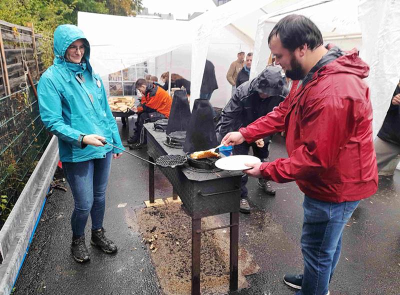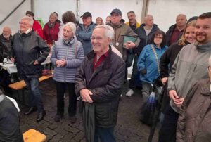 Der Wissener Jahrmarkt nahm am Samstag um 10.30 Uhr pünktlich seinen Anfang, jedoch etwas anders als erwartet. Leider zeigte sich der Wettergott nicht von seiner besten Seite – Ein Sturzregen mit starkem Wind fegte über das Veranstaltungsgelände. Das Jahrmarktteam war aber erwartungsgemäß flexibel und verlegte die Eröffnung kurzerhand ins Kaffee & Kuchen-Zelt. Teamsprecher Johannes Bender freute sich in seiner Ansprache über die rege Beteiligung der Wissener an diesem wohl bekanntesten Event der Region: „Wer hätte gedacht, dass wir nun schon zum 56. Mal im Namen einer guten Sache unterwegs sind“. Ein besonderer Gruß ging an den diesjährigen Schirmherrn Julian Schmitz-Avila. Der Kunst- und Antiquitätenexperte betreibt in Bad Breisig das Geschäft „Rheinland Antik“ und hat sich einen gewissen Bekanntheitsgrad durch die Mitarbeit in der ZDF-Sendung „Bares für Rares“ erarbeitet. Moderator ist übrigens Horst Lichter, der mit dem originellen Zwirbelbart.